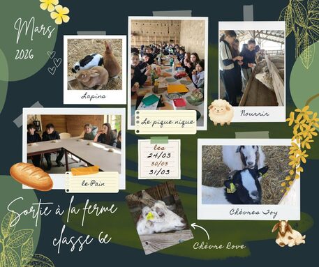 Les 24, 30 et 31 mars 2026, les élèves de 6e se sont rendus à la ferme Seguin, située à La Chapelle-du-Châtelard.